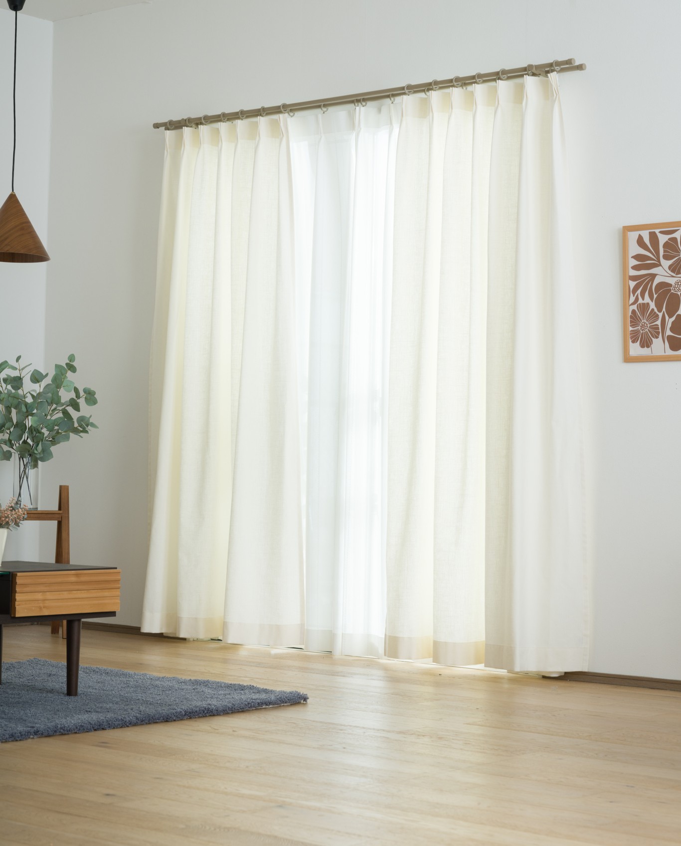 クリーム色は、乳白色に黄色が少し混ざった優しいカラー。クリーム色のカーテンは、お部屋にやわらかな明るさと安心感をもたらしてくれるのが大きな魅力です。