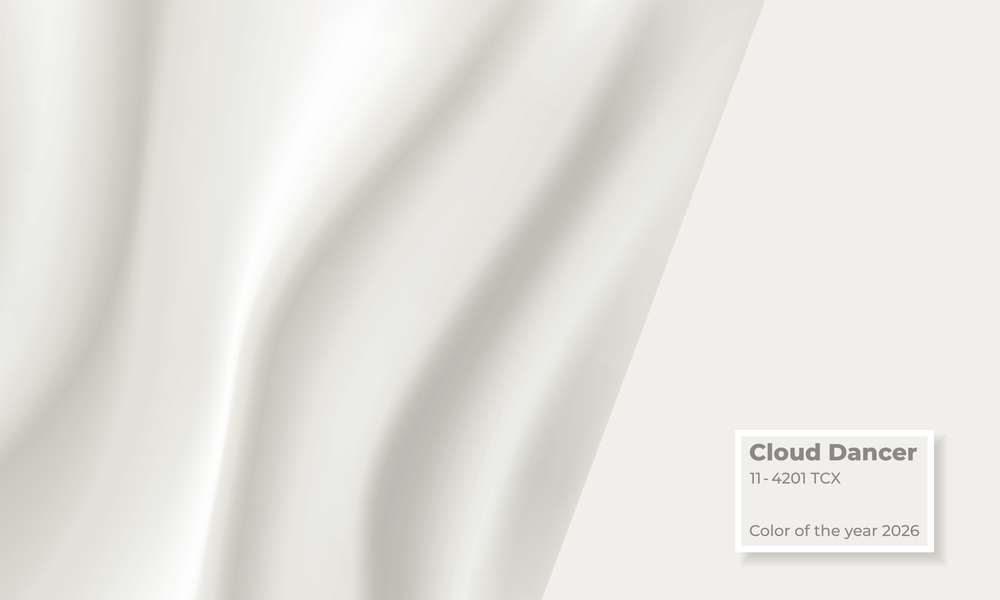 2026年のカラー・オブ・ザ・イヤーに選ばれたのは、心落ち着く高貴な白「Cloud Dancer(クラウドダンサー)」。