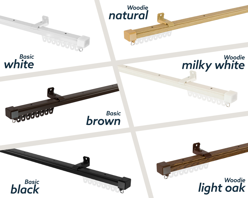 また、こだわりのランナー(車輪)とジョイント部分の構造で、カーテンの開閉がスムーズなのも特徴。カラーも、ベーシックなホワイト・ブラウン・ブラック。木目調のミルキーホワイト・ナチュラル・ライトオークの合計6色を用意しています。迷ったら、まずはコレ!と言える定番商品です。