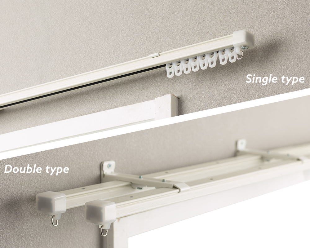 使用するカーテンの枚数によって、レールが1本のシングルと、レールが2本のダブルに分かれます。