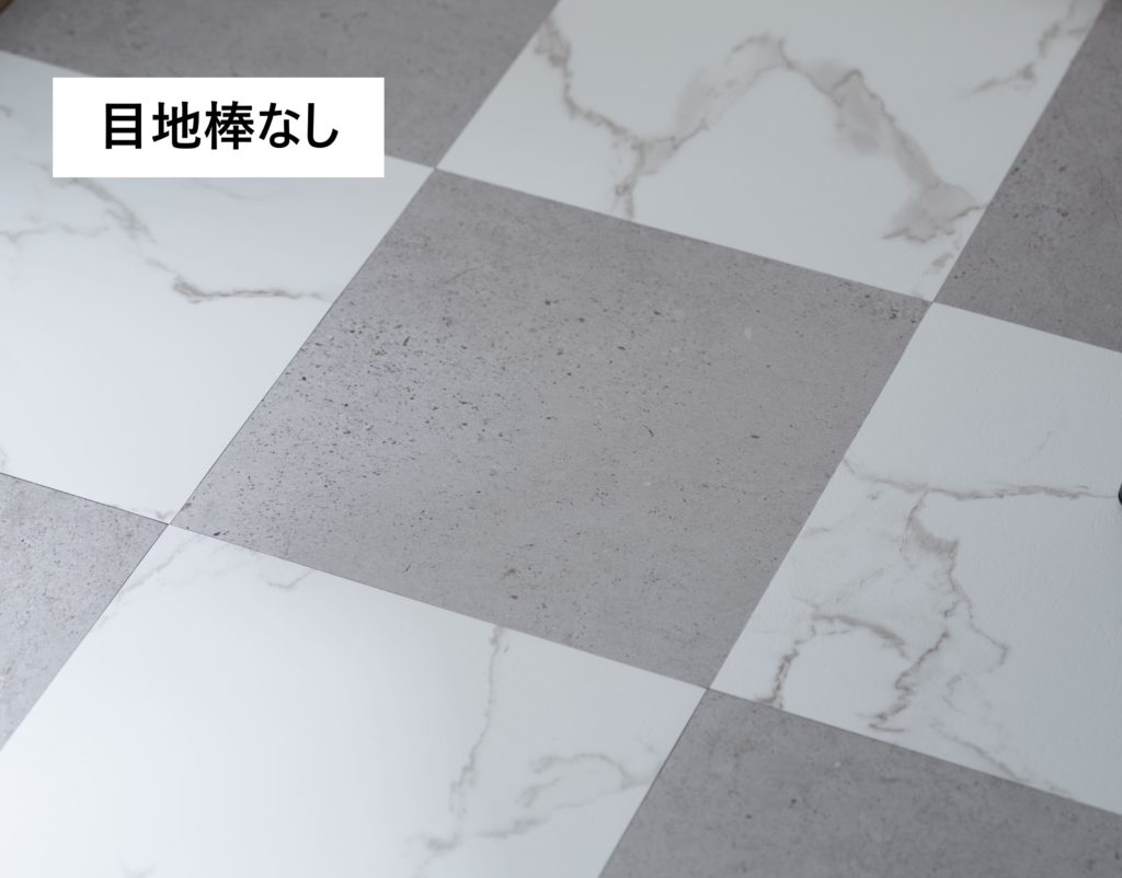 フロアタイルを並べる際に、目地棒を一緒に入れていくだけ。工程はそこまで変わらないのに、仕上がりの印象は大きく変わります。ここが、目地棒を取り入れる一番のメリット。