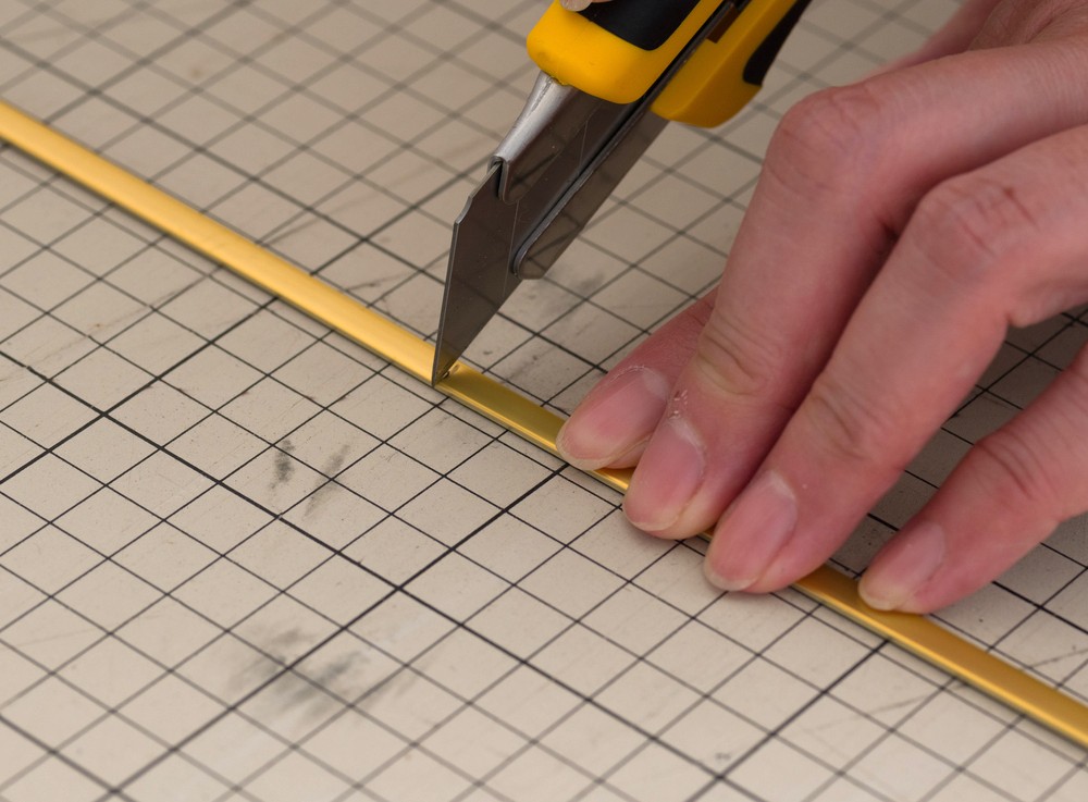 タイルに合わせて必要な長さに印を付け、斜めにならないように表面からカッターでまっすぐカットしていきます。