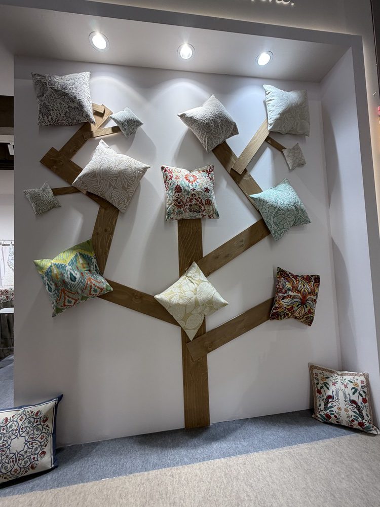 ディスプレイの方法もブースごとに多種多様。前述したような民族系のデザインをクッションカバーに施して、樹木に見立てたブースも。