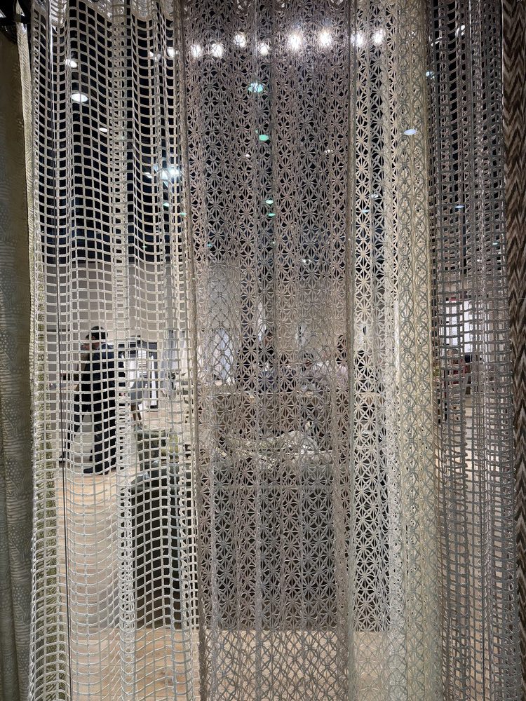 今回のハイムテキスタイルも例外ではなく、さまざまな展示ブースで流れるようなウェーブのカーテンを見ることができました。