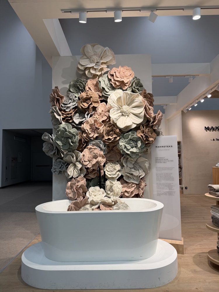 たくさんの寝具ブースで、このラタン調の照明を使っていていました。サステナブルの観点から自然素材が注目される中、特に「癒し」や「安らぎ」が重要になる寝具エリアで多用されていたようです。