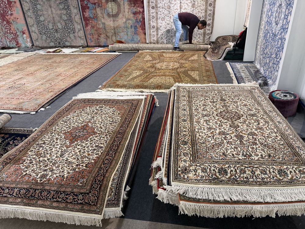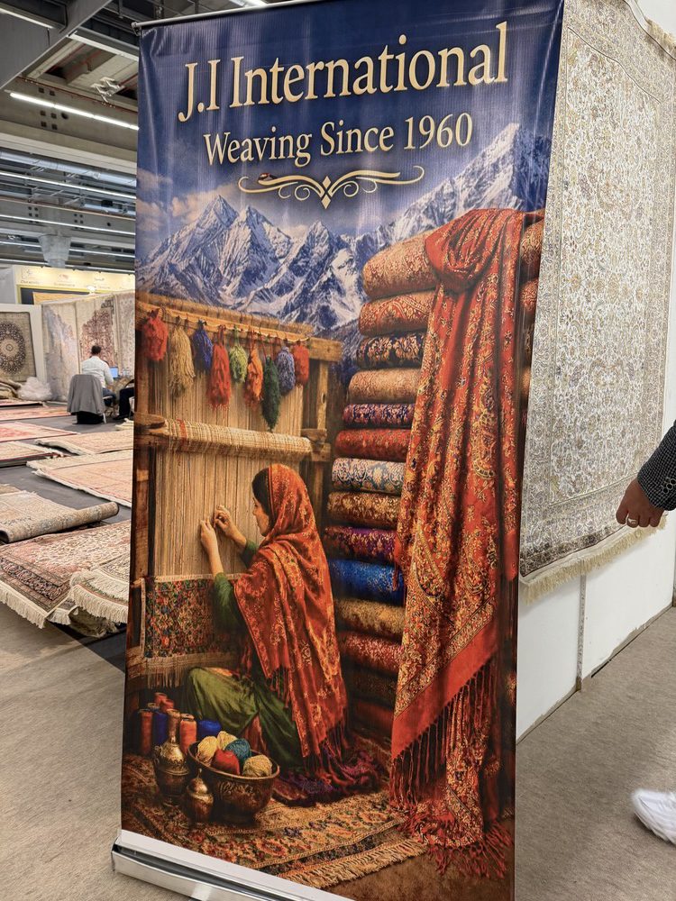 今回の展示では、「手織り絨毯」のエリアも広く展開されていたので、私たちもたくさんのアイテムをチェックすることができました。特に日本でも人気の高いペルシャ絨毯(オリエンタルラグ)の分野は、伝統的な柄とトレンドカラーを組み合わせたようなデザインも発表され、興味深いものばかりでした。