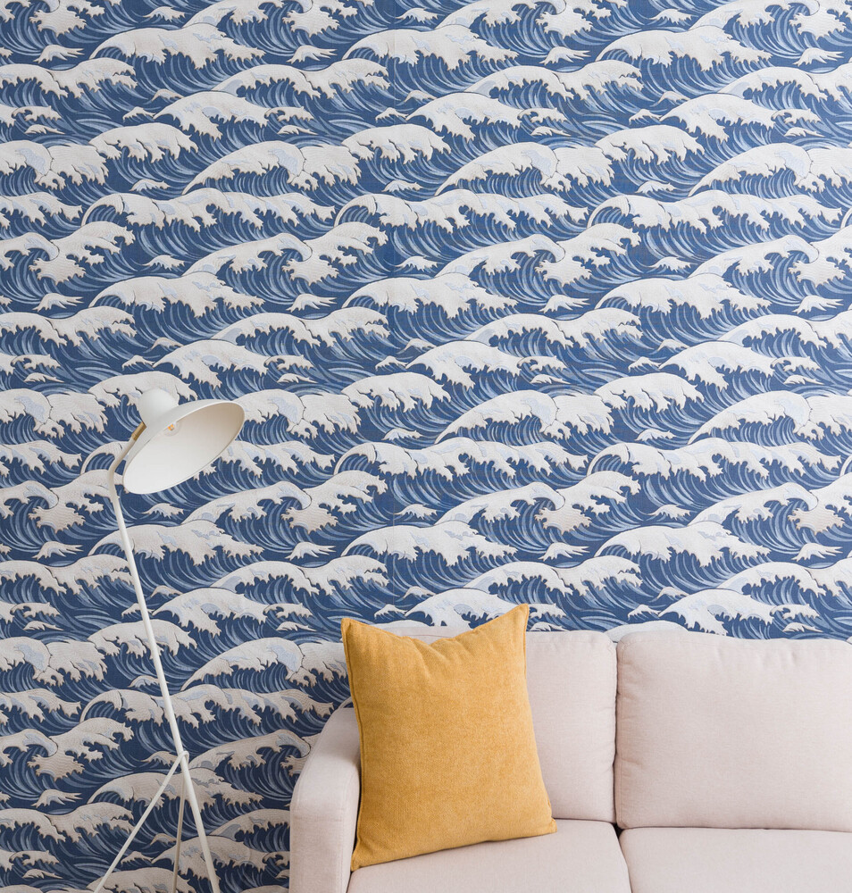 「ナチュラルよりもインパクトがほしい」「ちょっと尖ったおしゃれが好き」という人には、葛飾北斎の名作「富嶽三十六景 神奈川沖浪裏」をイメージさせるようなデザインの壁紙を。