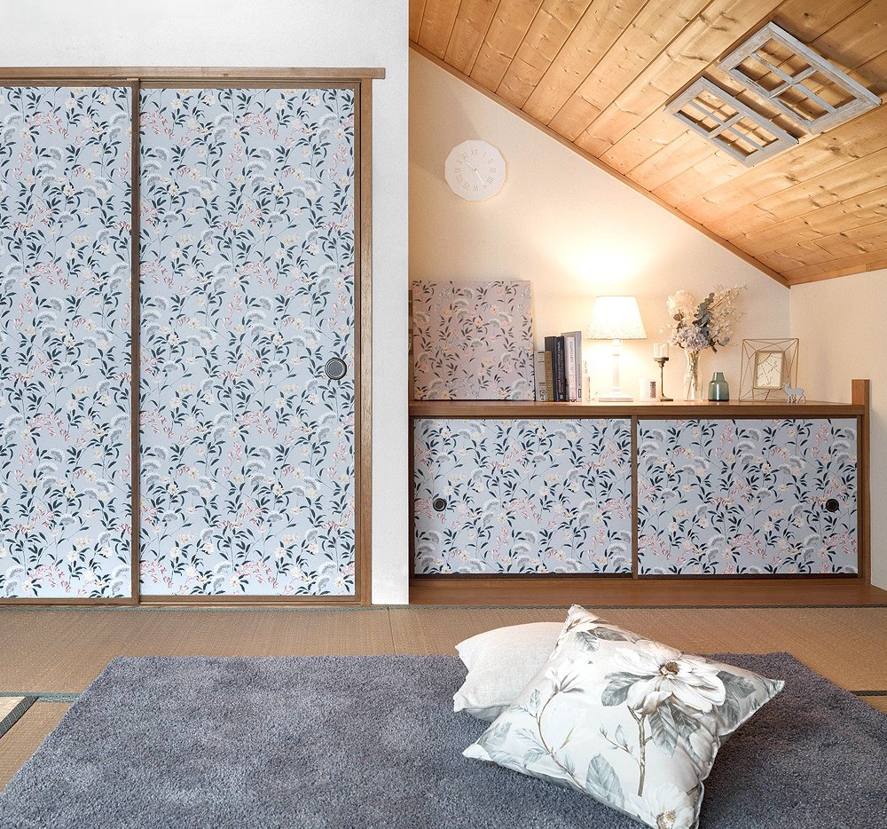 こちらの壁紙は、ふすまにも使えるので、和室の襖に貼って個性的な和室を演出するのも素敵です。