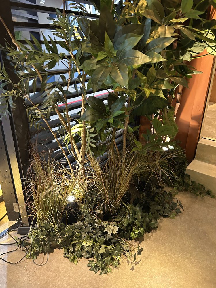間接照明によってコントラストが生まれ、遠目からは本物と見間違うほどリアルなグリーンを演出していました。