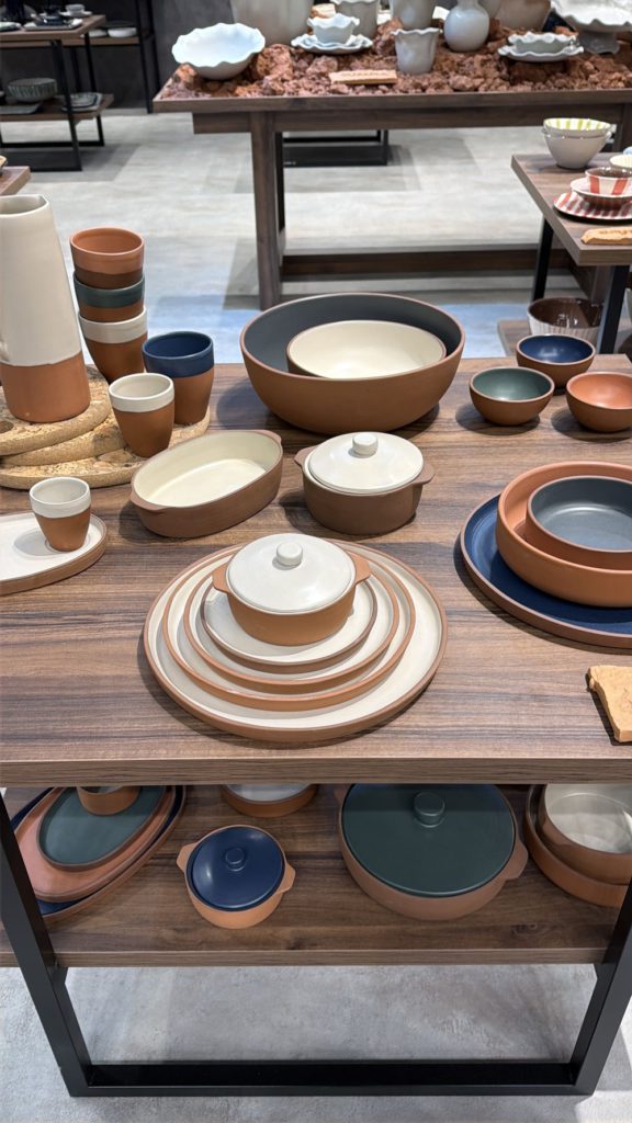 また、食器類では素焼きのような土っぽさのあるもの(写真下左)も多い印象。全体的に、素材の特徴を引き出したデザインや、テクスチャそのものを魅力的に使ったデザインが目を惹きました。