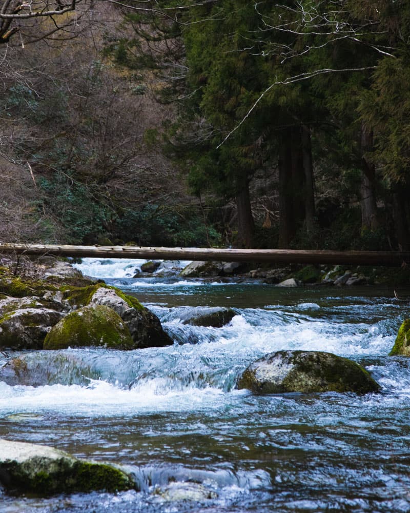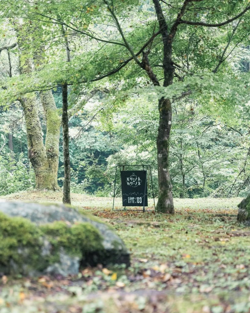 その名の通り、豊かな森と川のせせらぎが響き合う美しさを感じられるだけでなく、山の神様を祀る「岩屋観音」や「岩屋大杉」が佇む、古くからの歴史が息づく場所でもあります。だからこそ、「モリノネカワノネ」の設備はいたってシンプル。普段は無人で運営されており、自然そのままを楽しんでいただける静かなキャンプ場です。