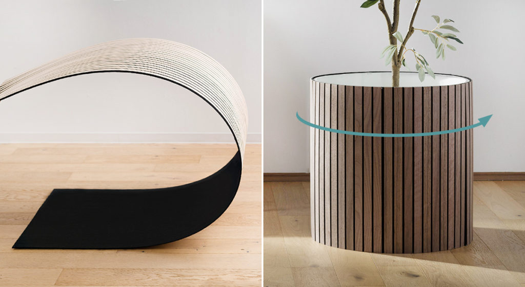 軽くて、天井まで届き、曲面にも使えるRIB:BOだからこそ、施工の可能性も広がります。