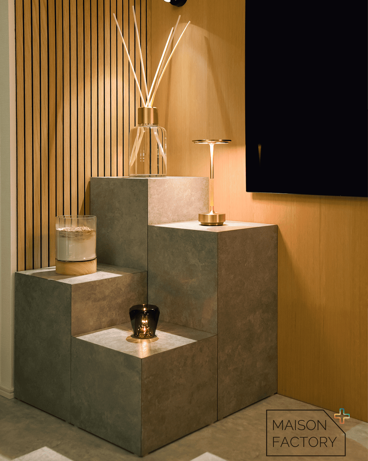 リブ状のウォールパネルは、世界のインテリア見本市でも人気のアイテムですが、こういった施工難易度の低さはRIB:BOならではの魅力ですね。