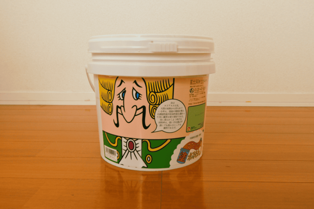 今回はひとりで塗れるもんの「ヴィクトリアグリーン」の11kg缶を使って挑戦。Cyanのおうちの場合は少し余ったくらいでした。