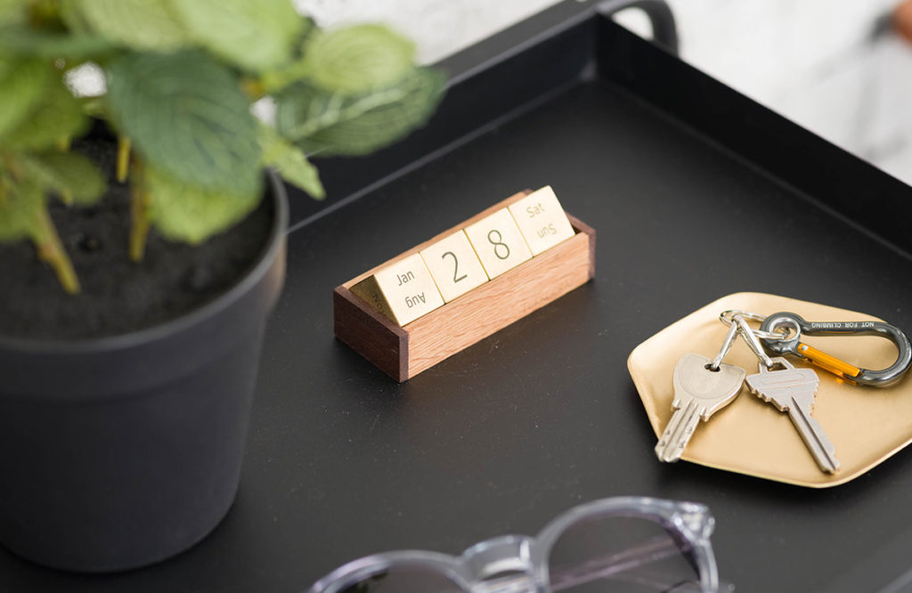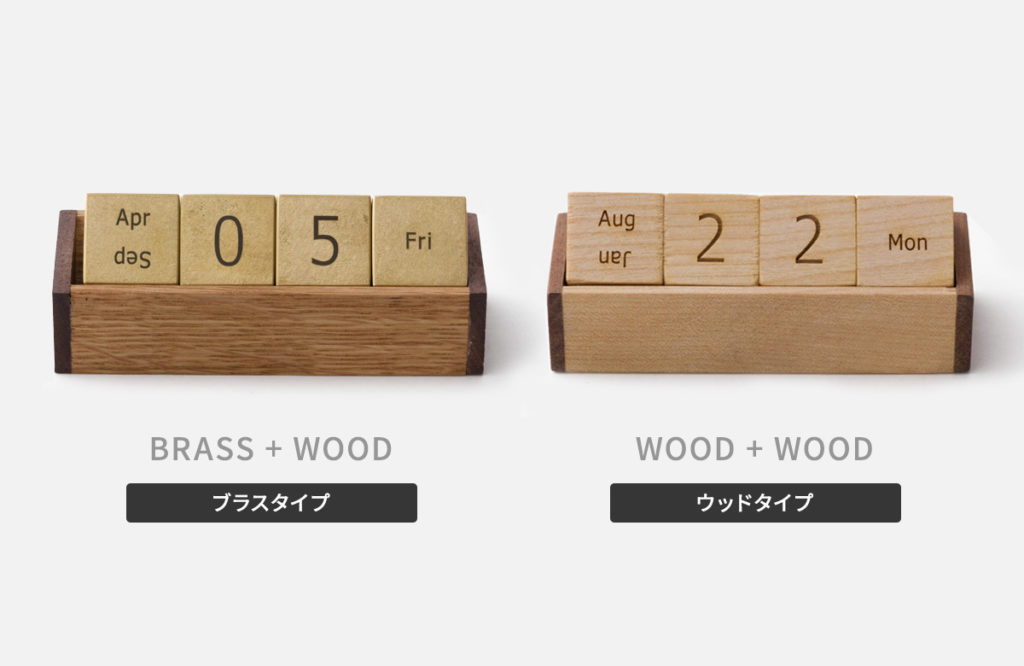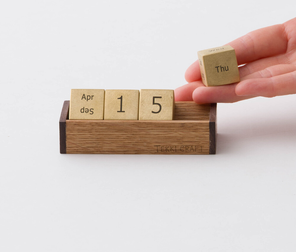 ウッドタイプは、キューブとホルダーのどちらも天然木でつくったカレンダー。キューブ一つひとつ、面一つひとつの木目に個性があって、毎日違う表情が味わえるんです。