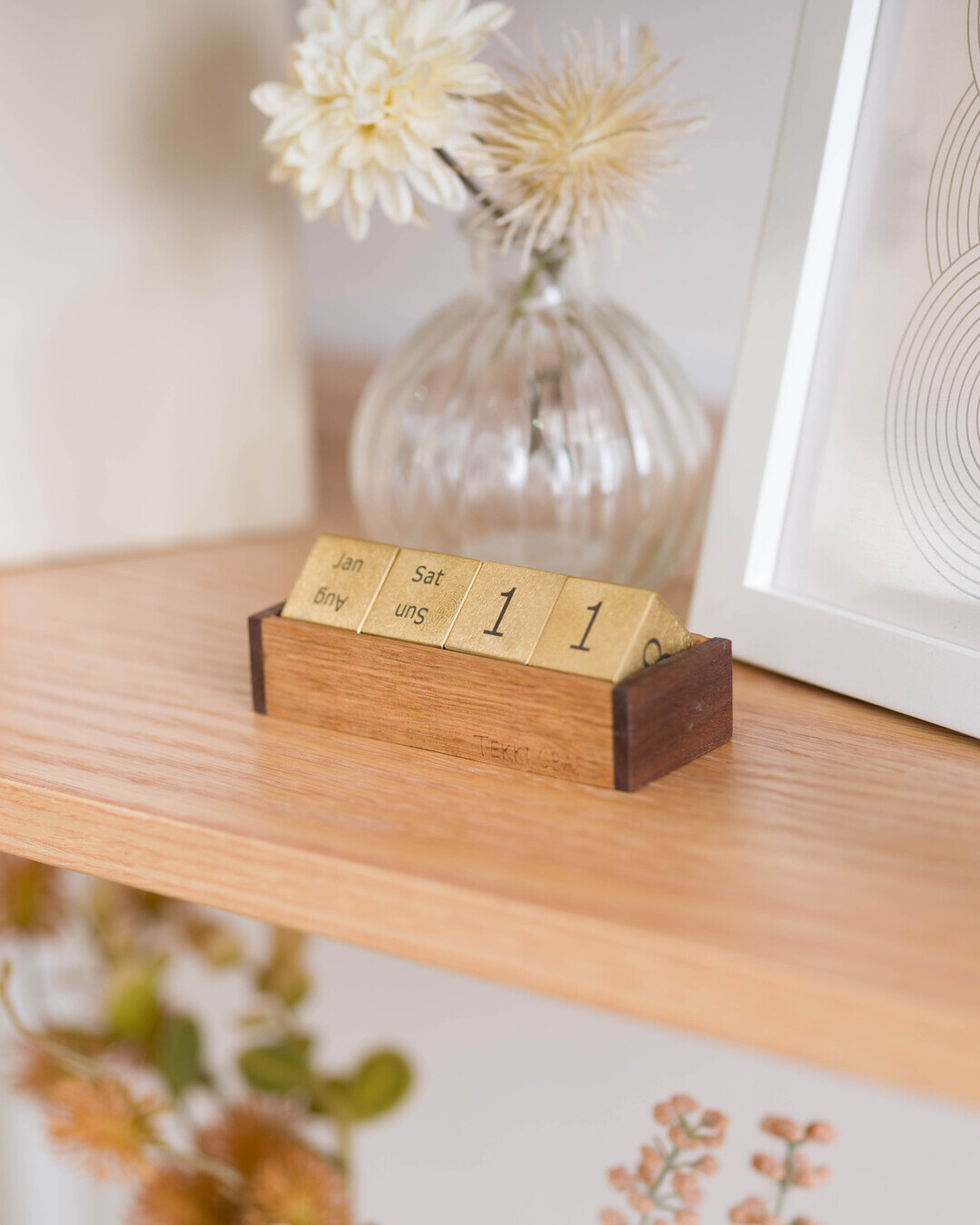 ウッドタイプは、キューブとホルダーのどちらも天然木でつくったカレンダー。キューブ一つひとつ、面一つひとつの木目に個性があって、毎日違う表情が味わえるんです。