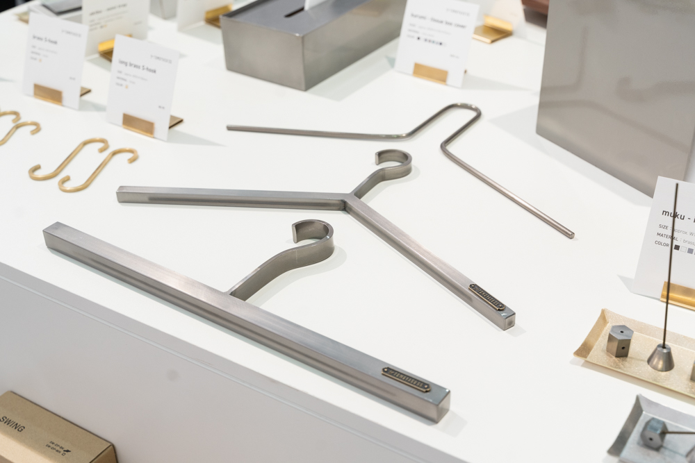 実用的な日用品に、日本の美意識を落とし込んだアイアンハンガー「kabuto(カブト)」「yari(ヤリ)」「yumi(ユミ)」も、多くの来場者の足を止めました。