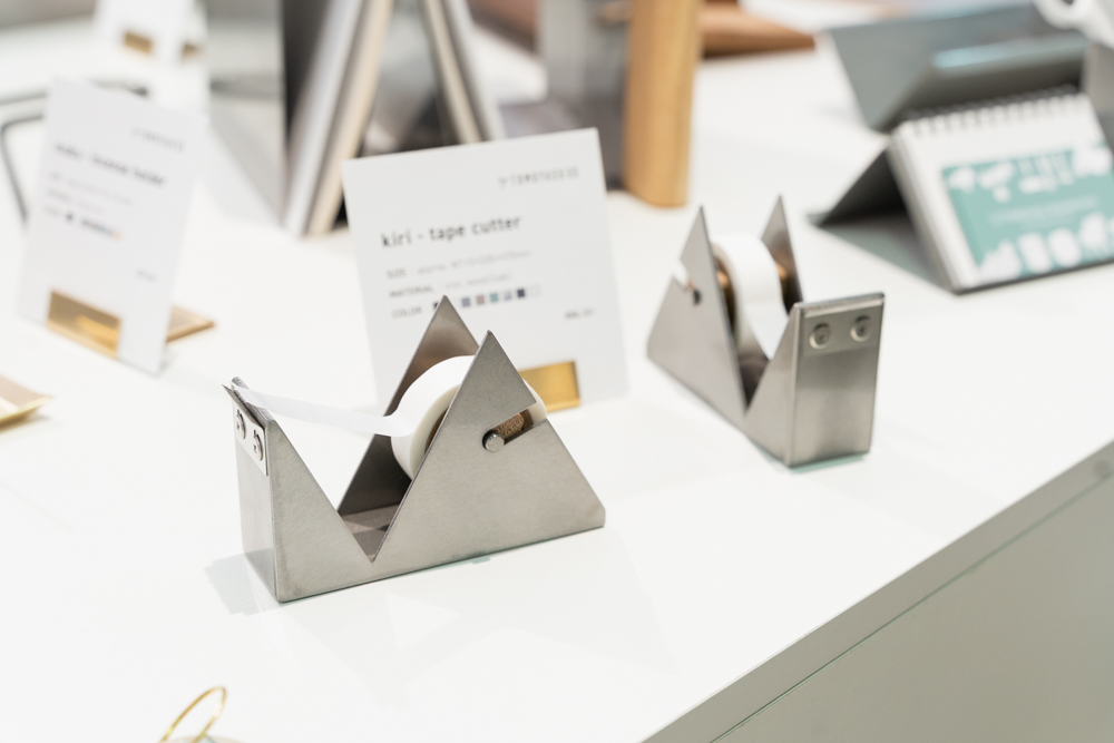 「by TOMOYASU S.S.」のラインナップの中でも、その愛らしいフォルムで多くの足を止めさせたのが、アイアン製のマスキングテープカッター「kiri(キリ)」です。