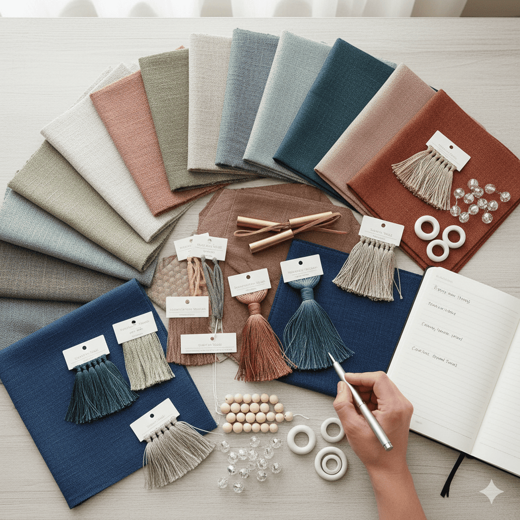 カーテンは、お部屋の面積を大きく占める「顔」とも言える存在。そこにどんなタッセルを添えるかで、窓際の印象が左右されます。今回は、タイプの異なる3つの代表的なカーテンをピックアップ。それぞれの持ち味を最大限に引き出し、理想の空間へと導く「相性抜群のタッセル」をプロの視点でコーディネートしました。