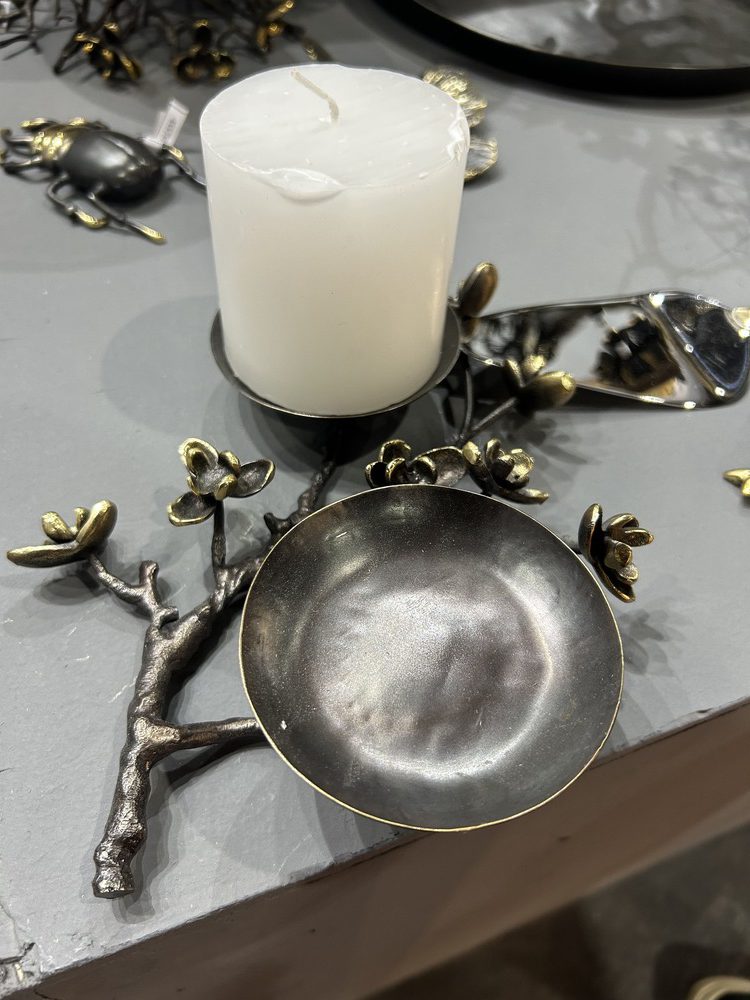 今までになかった、ハンマーで真鍮をたたいてつくる「槌目模様」のデザインや、植物をモチーフにした燭台など、新しいアイデアが多く取り入れられていました。