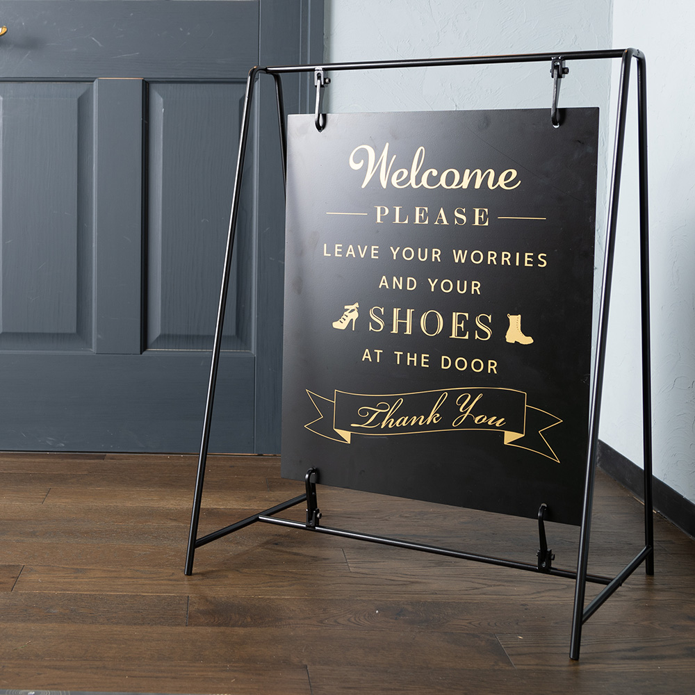 女性が持ち運べる程度の重さでありながら、看板としてしっかりと存在感がある置き型。