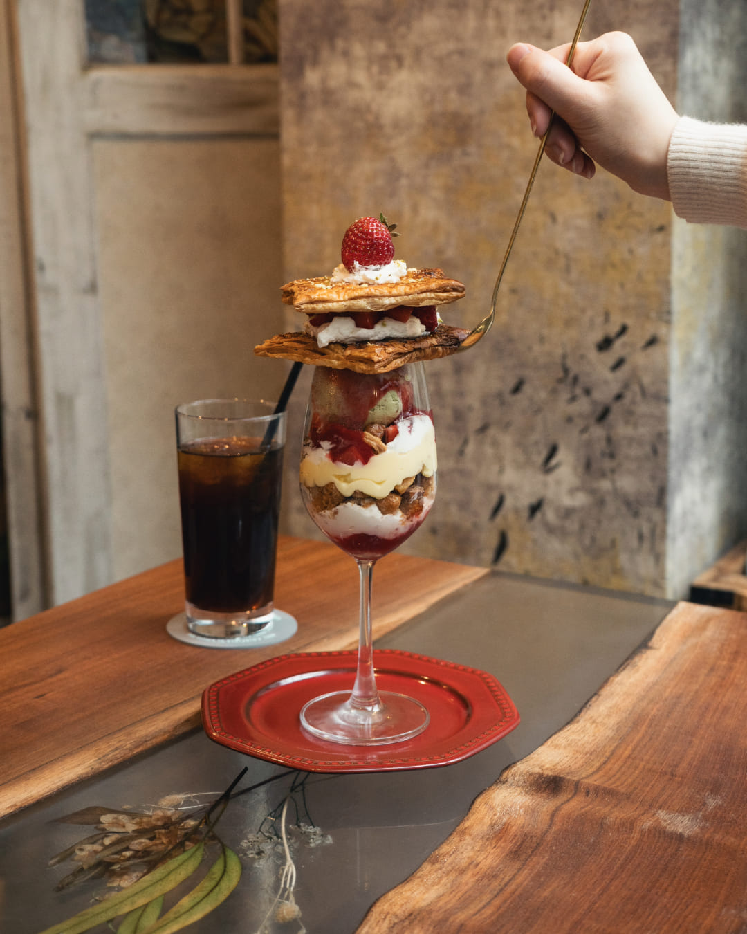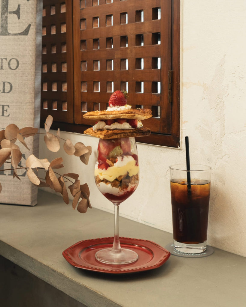 「苺とピスタチオのミルフィーユパフェ」(1,600円)