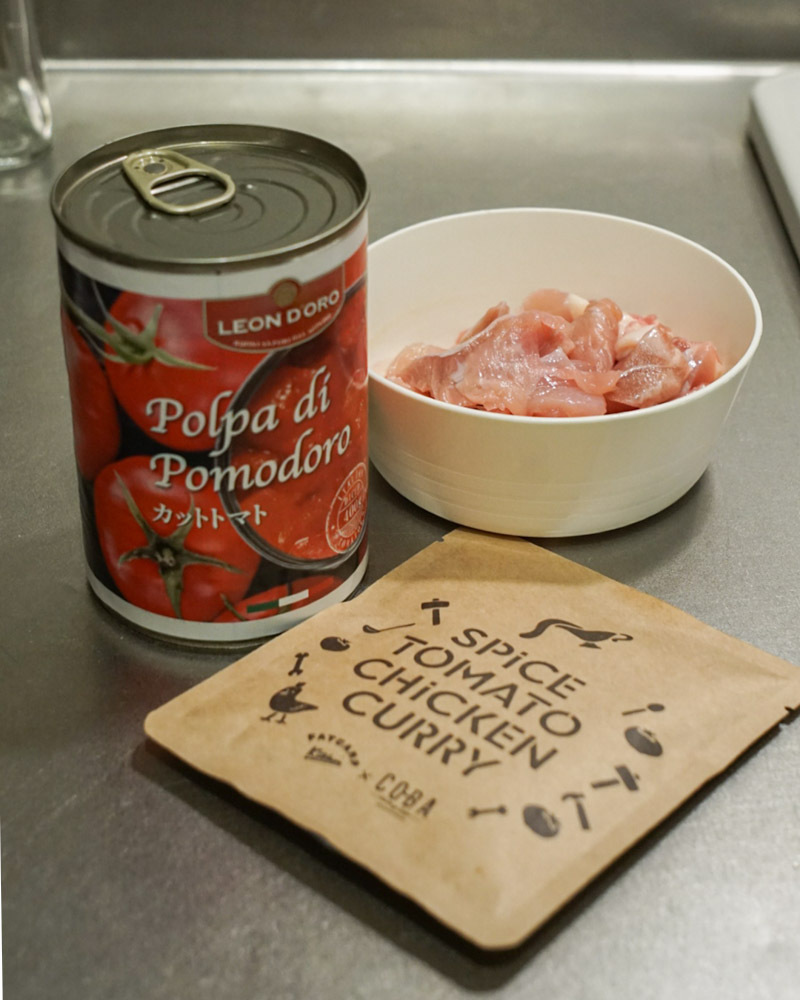 ちなみに今回使用したスパイスキットは、CO-BAの人気メニュー「CO-BAスパイストマトチキンカレー」と同じ種類のスパイスです。お店ではオーガニックのトマト、焼き色を付けた香ばしい鶏肉をベースに約1時間煮込み、さらに一晩寝かせて提供しています。トマトの酸味がほどよく落ち着いた、奥深いコクが特徴です。