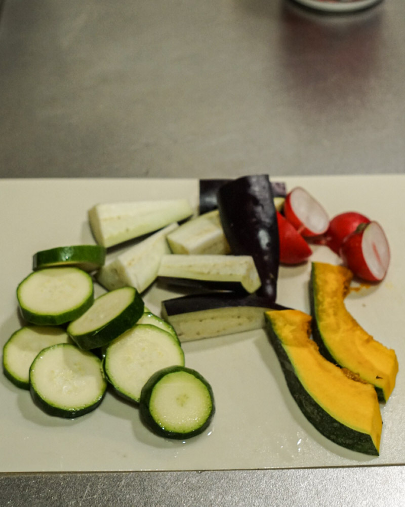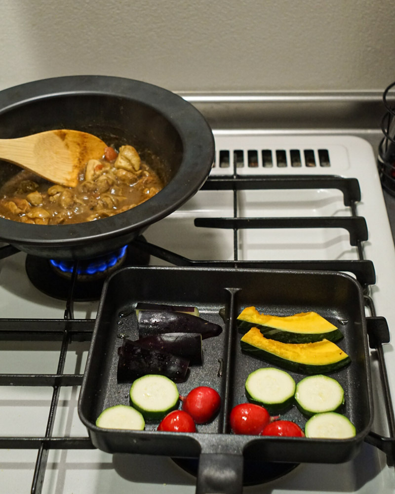 3. 煮込んでいる間に、グリル野菜など盛り付け用の具材を準備します。