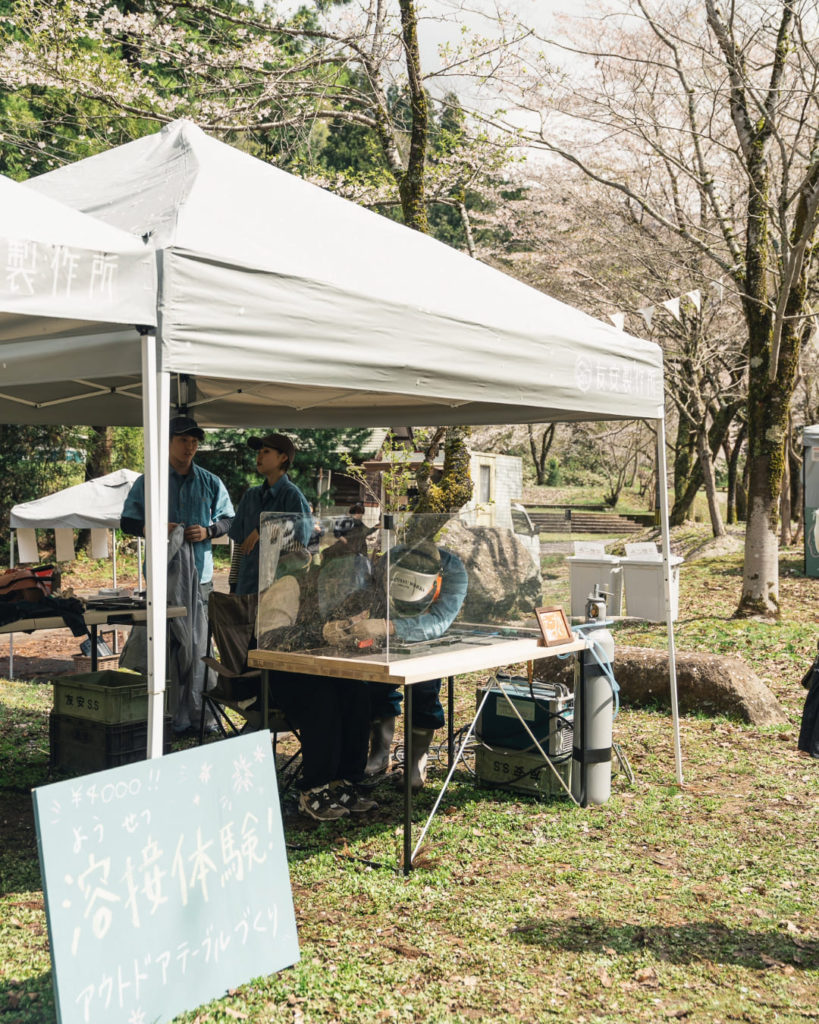 お子さんから大人まで、普段目にすることのない溶接の現場をたくさんの人に楽しんでもらうことができました。溶接のつなぎ目ひとつにも、炙る時間によって色合いや光沢感が変わる木の板にも、一点一点に個性が宿っていました。同じ工程のものづくりでも、つくり手によってアウトドアテーブルの表情が少しずつ変わるという奥深さを、私たちも改めて実感したひとときでした。
