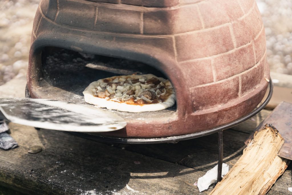 【本格アウトドアクッキング】こんがりおいしい!薪窯ピザの具材をトッピング&桜チップ燻製