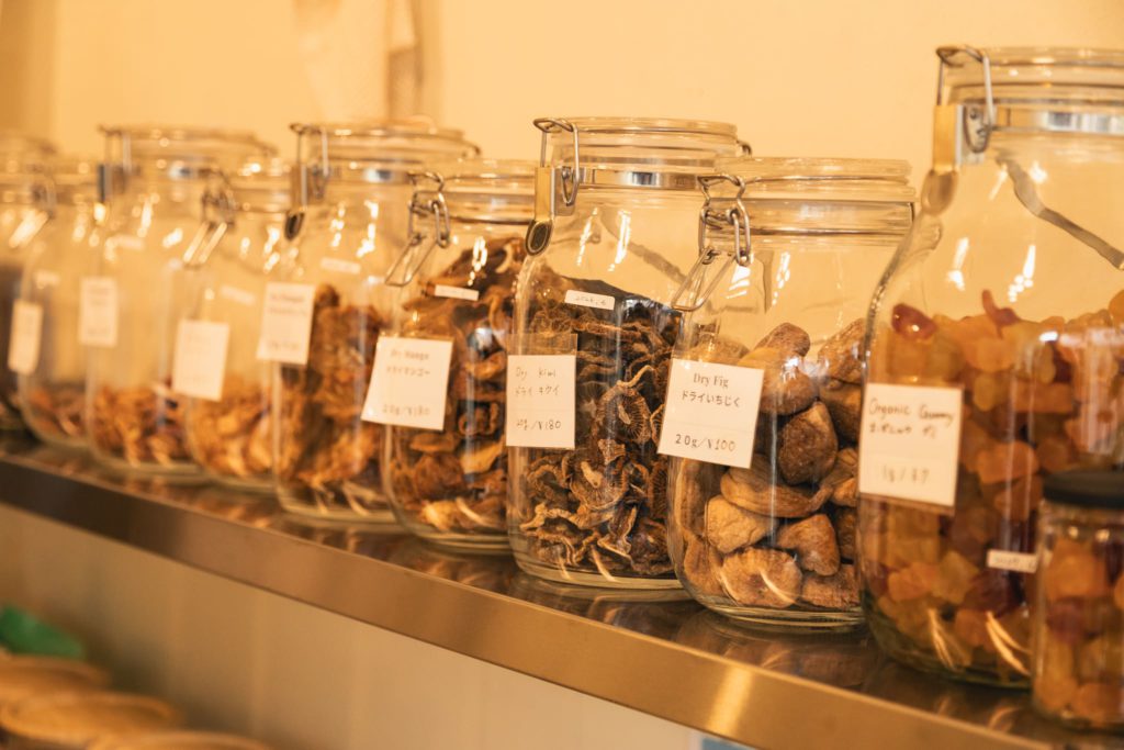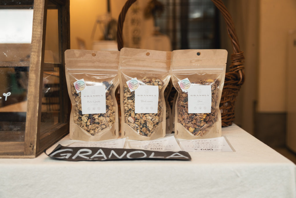 「量り売りは、おやつを瓶で販売されているところが可愛くて、無駄がないのでゴミが少ないところも素敵だなと感じています」と黒木さん。理想のお店を実現させた一番の目的は、何よりからだに嬉しい食習慣の良さを広めること。 「贅沢品という印象を持たれてしまっては、私がお菓子づくりを始めた意味がない。毎日の朝ごはんやおやつに置き換えて、そのまま食べたり、ヨーグルトやミルクを組み合わせたりなど、グラノーラを日常的に食べてほしいです」と、人に寄り添う強い心と行動力で、確かな想いでお店を続けています。
