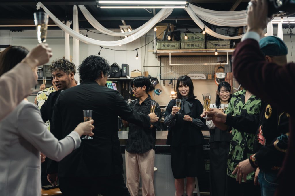 入社式は、学生から社会人に変わるという、人生でたった一度きりの瞬間です。 その大切な瞬間を全力で彩りたいという想いから、この入社パーティーは始まりました。