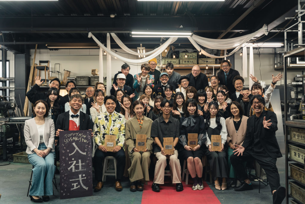 無機質なコンクリートの上に、まっすぐに伸びる鮮やかな一本のレッドカーペット。 本日、新卒社員として、Alex(アレックス)・Azz(アズ)・Phakchi(パクチ)・Gia(ジア)・Shinno(シンノ)の5名が、友安製作所に入社しました。5名の晴れ姿を見ようと、工場には先輩社員が集結。それは一般的な入社式の枠を超えた、笑いあり、感動ありの「入社パーティー」でした。友安製作所らしさが全開だった濃厚な1日を、余すことなくレポートします!
