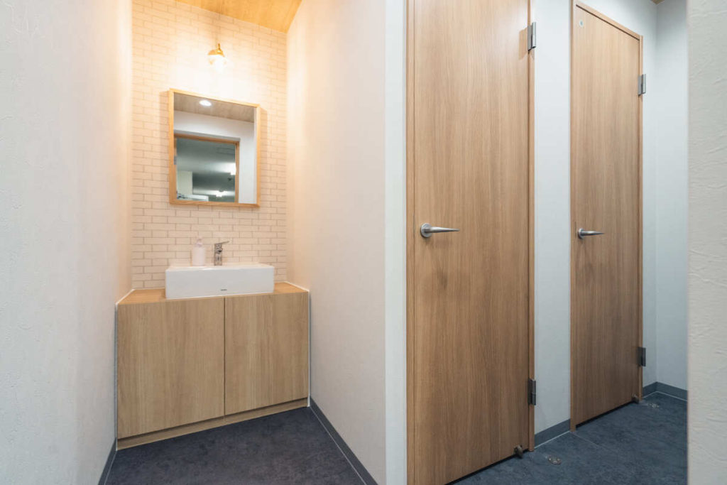 3年後の会社の理想像を語り合う社内ディスカッションで、「女子トイレを増やしてほしい」「バーカウンターのような場所があればいい」といった社員の声が多数上がったのが、きっかけでした。ちょうど新卒女性の入社も控えていたタイミングで、「これはやるしかないな」と。もともと1階には女性専用トイレがありましたが、2階は男女共用のみ。今回のリノベーションでは、その2階トイレを女性専用に変更することにしました。女性社員の人数が少しずつ増えてきたこともあり、「そろそろ分けていくべきだろう」と感じたのがひとつのきっかけです。