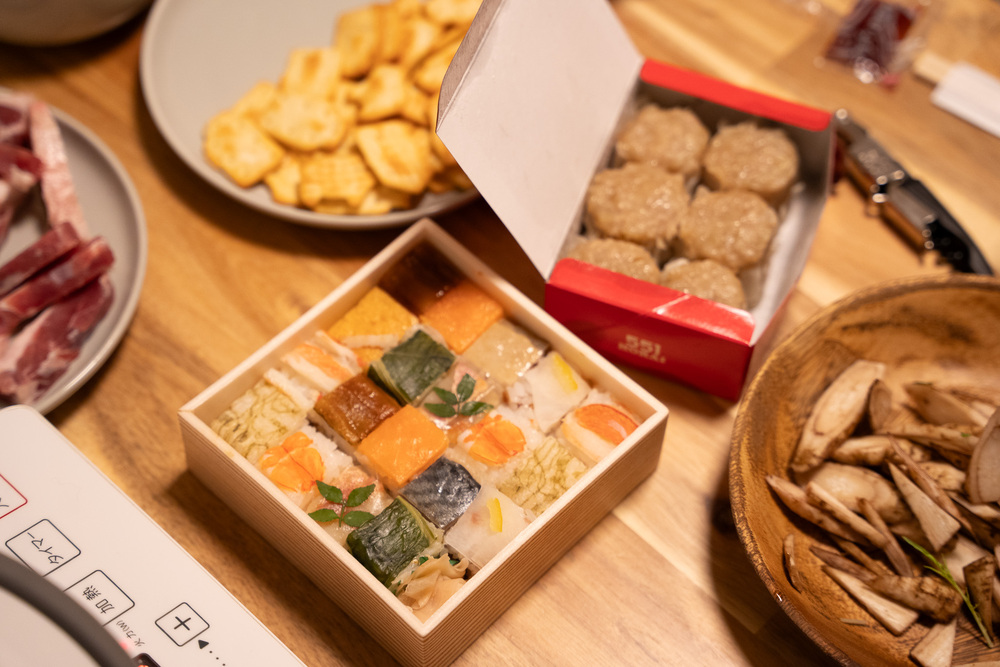 今回は、鉄板の某中華まんや、小さなお寿司、おつまみにぴったりの生ハムやクラッカーなど、編集部のメンバーが思い思いの料理を持ち寄りました。