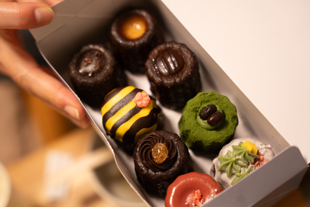 ちなみにJackyは、ちょうど北海道に出かけていたので、お土産を兼ねて珍しい黒いチーズケーキパンを持参しました。そしてBoss(友安製作所の社長)からも、差し入れとして可愛いスイーツや美味しいお酒をいただきました。